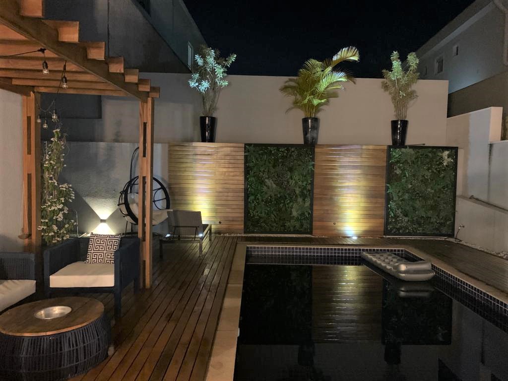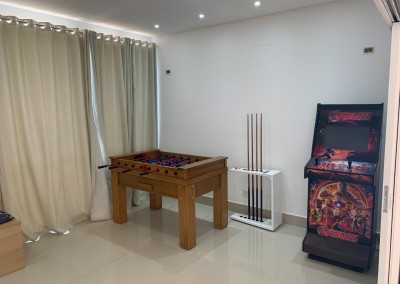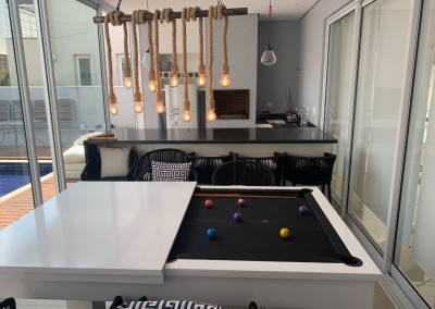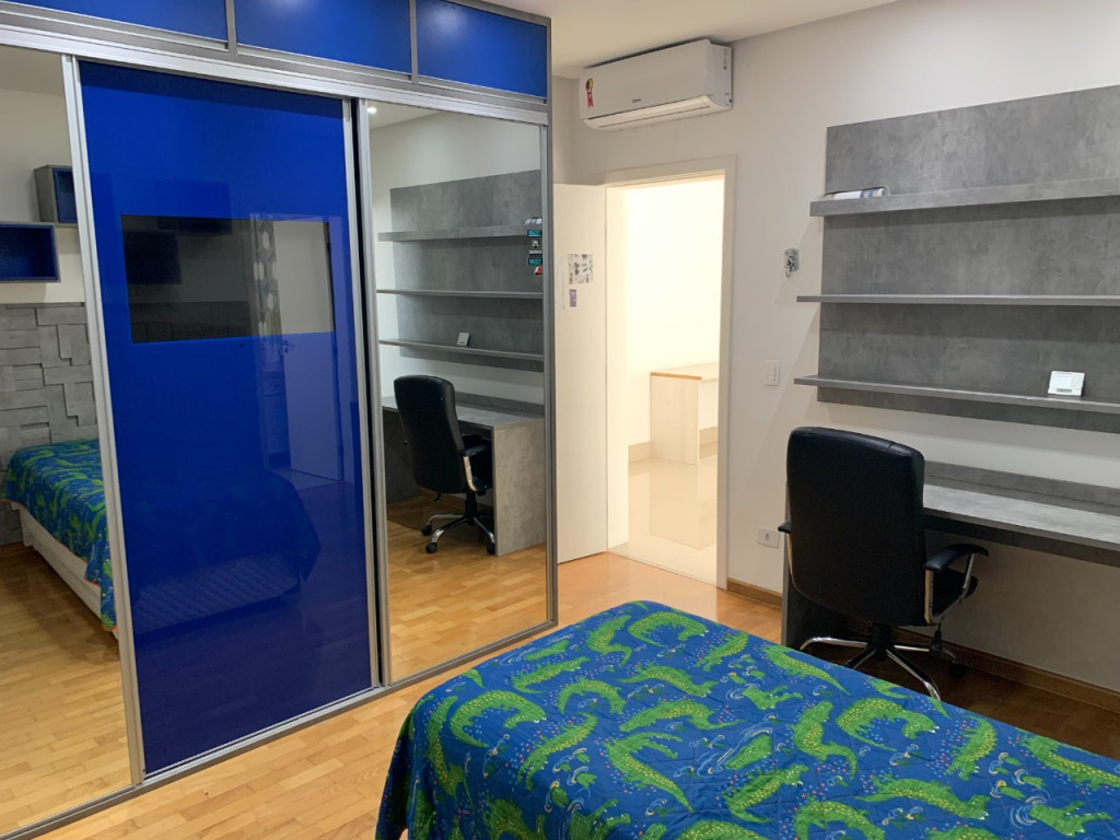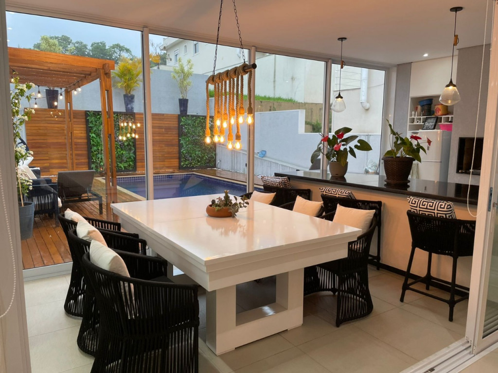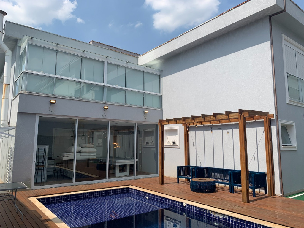 Casa de condomínio em Alphaville, no Burle Marx com 4 suítes (sendo a suíte master com banheira). Possui cozinha, sala de jantar, sala de estar, sala de jogos, sala de TV, pequeno terraço, suíte de funcionária, depósito na garagem, jardim de inverno na entrada inferior da casa, elevador, garagem para 6 carros( sendo 3 cobertas), piscina aquecida, deck de madeira, mini campo de futebol, área gourmet com geladeira, mesa de sinuca e canil.