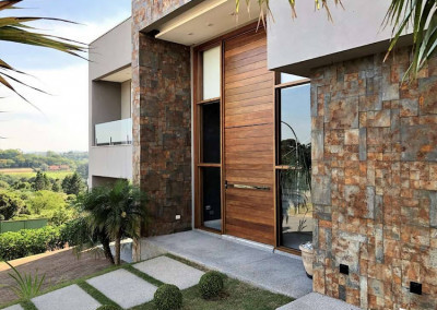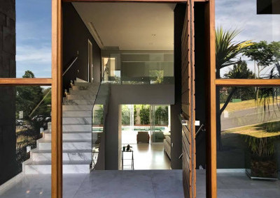 - Hall de entrada social com porta maciça imponente e fechadura eletrônica Yale.