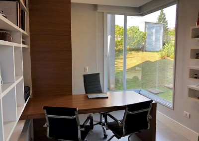 - Escritório ao lado do hall de entrada, com porta de correr.