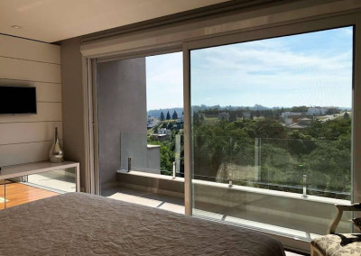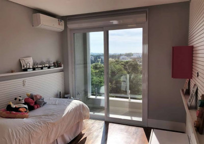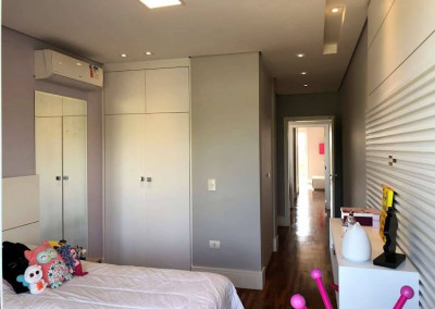 - 5 suítes com closets e armários, estantes e bancadas. Persianas elétricas e ar condicionado Q e F. Sendo 4 suítes com terraços e guarda corpos em vidro.