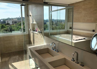 - Banheiros com bancadas em Sylestone, metais Deca de 1º linha, espelhos, gabinetes e chuveiros com box de vidro e nichos.