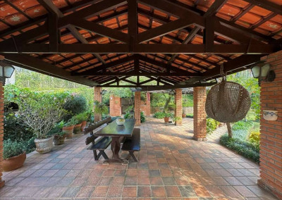 Garagem coberta ao lado do gourmet (ligados por pergolado) que pode ser usada tanto como um salão para festas, como para estacionar até 4 carros.