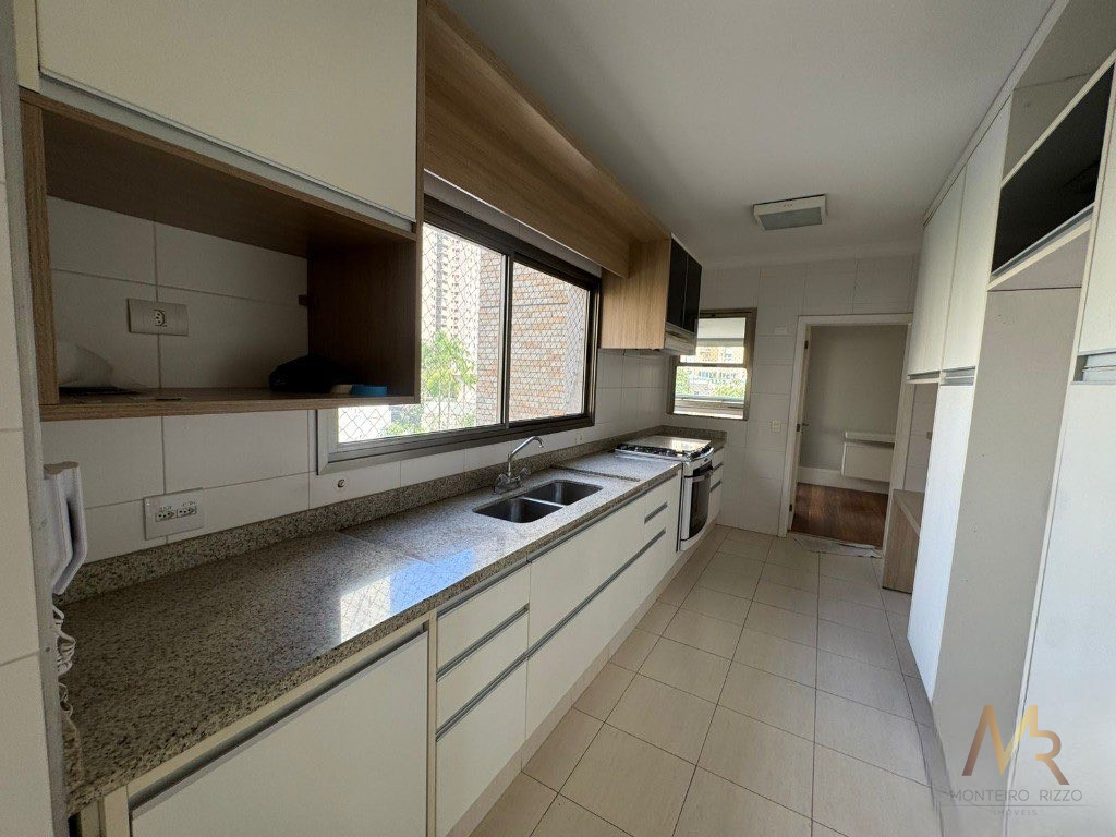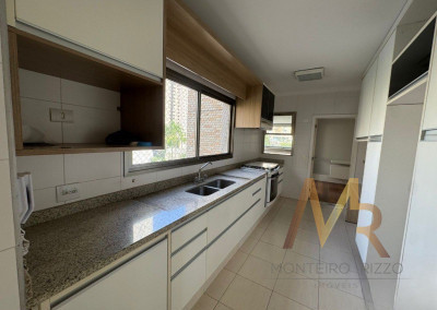 Cozinha Completa com Armários: A cozinha é funcional e bem equipada, incluindo armários planejados que oferecem amplo espaço de armazenamento. Há também uma despensa para organizar os mantimentos.