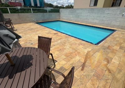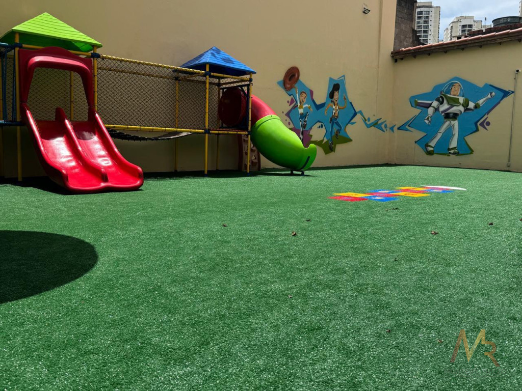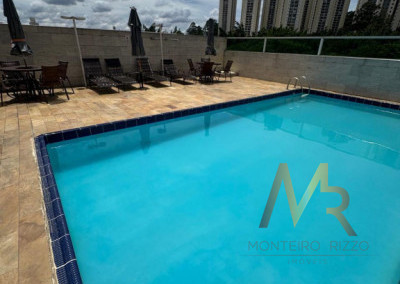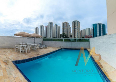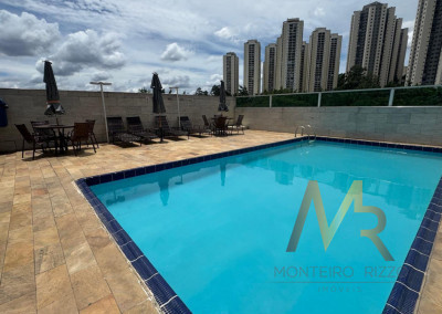 Lazer com piscina, churrasqueira, quadra esportiva, salão de festas, playground.