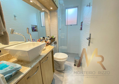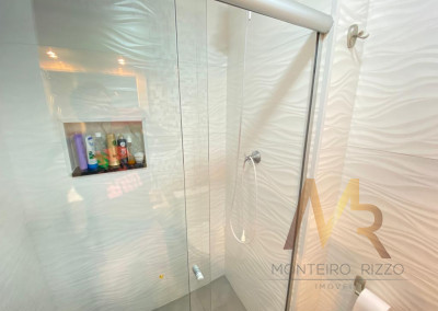Banheiros com revestimentos, louças e metais sanitários de ótima qualidade e iluminação embutida.