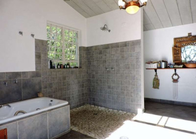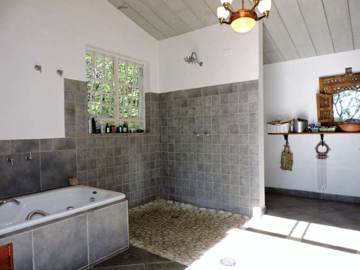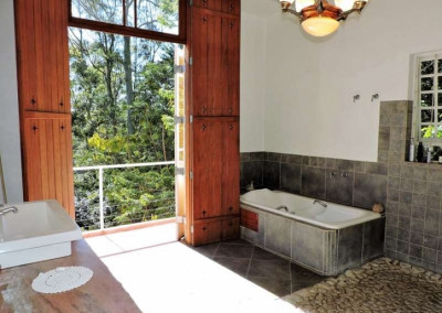 A casa dispõe de duas suítes, com potencial para mais duas. A suíte máster, acessada por uma escada de madeira no piso superior, é um refúgio luxuoso com 70m², pé direito alto, closet e banheiro completo. A vista privativa e a conexão com a natureza tornam este espaço ainda mais especial.