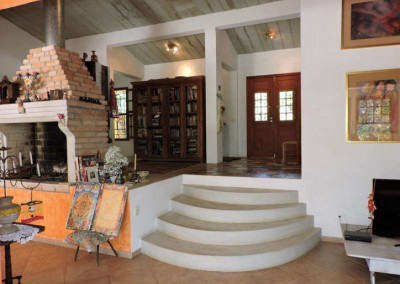 Ao adentrar o imóvel, um lindo pátio receptivo com paisagismo conduz ao hall de entrada social, que se conecta harmoniosamente às áreas social, íntima e de serviço. O living, localizado no andar intermediário, proporciona espaços amplos para TV, estar, lareira, almoço e jantar, todos voltados para um generoso terraço que se abre para a beleza da mata.