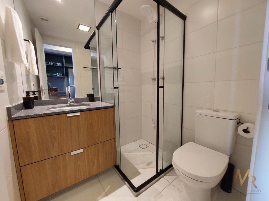 Apartamento studio mobiliado à venda no Alto da Boa Vista, linda vista, 25m², sacada envidraçada, repleto de móveis planejados de excelente qualidade, cozinha completa com fogão de indução, micro-ondas, geladeira e purificador de água.