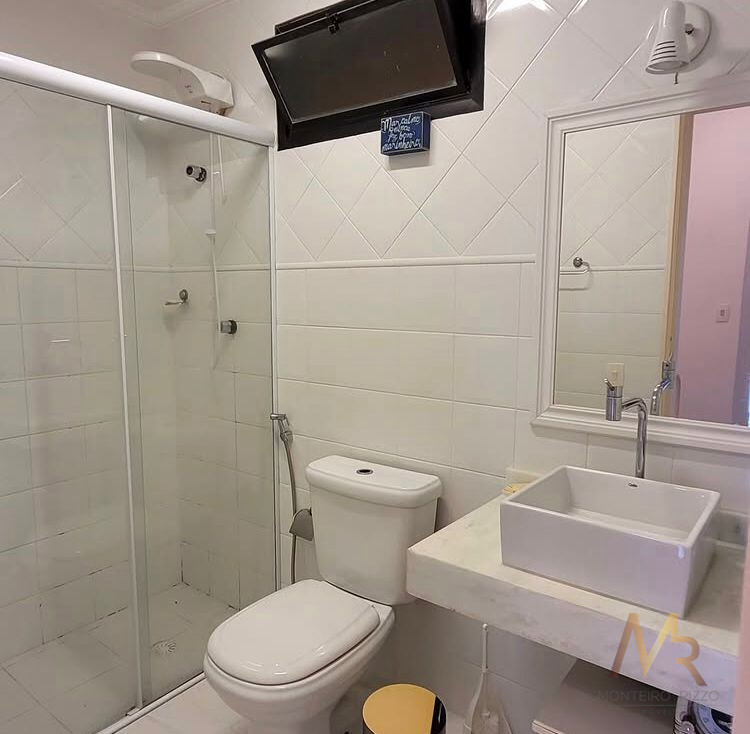 Condomínio conta com máquina de gelo, sauna, piscina aquecida, serviço de praia.