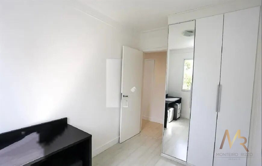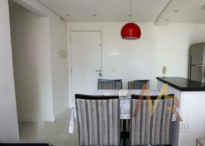 Apartamento na Vila Andrade com 50m², 2 dormitórios, possui armários planejados em todos os cômodos. Cozinha com cooktop e forno, bancada de granito preto, living com painel para TV e cortina. No dormitório principal com armário planejados, espelho e painel para TV. No segundo quarto, mesa para escritório.