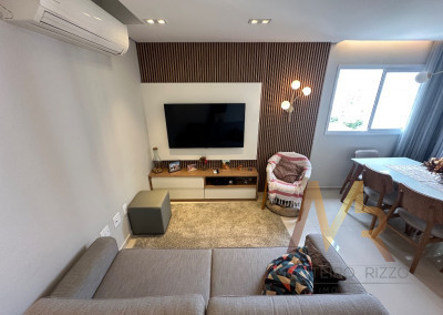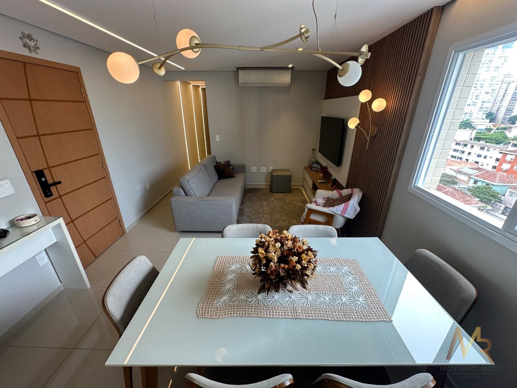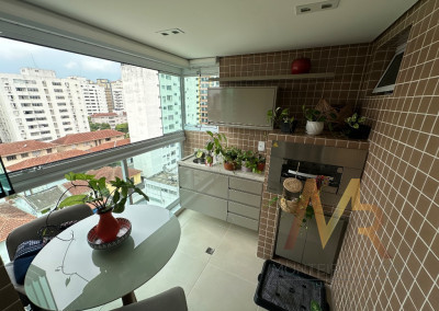 Apartamento na Praia com terraço gourmet! Este incrível apartamento de 2 suítes, 2 salas, 3 banheiros, varanda gourmet com churrasqueira, ar-condicionado na sala e nas suítes, fechadura eletrônica, 2 vagas de garagem e 82,00 m2 de área.