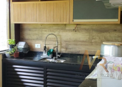 Cozinha Gourmet externa junto a Churrasqueira e forno de pizza.
