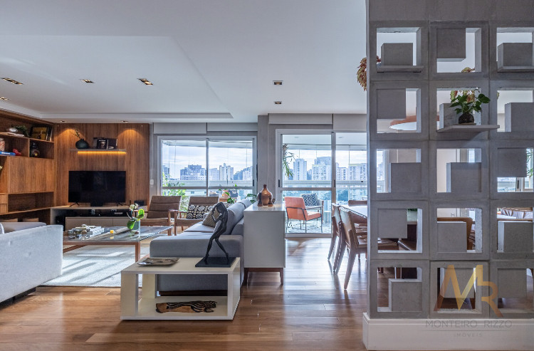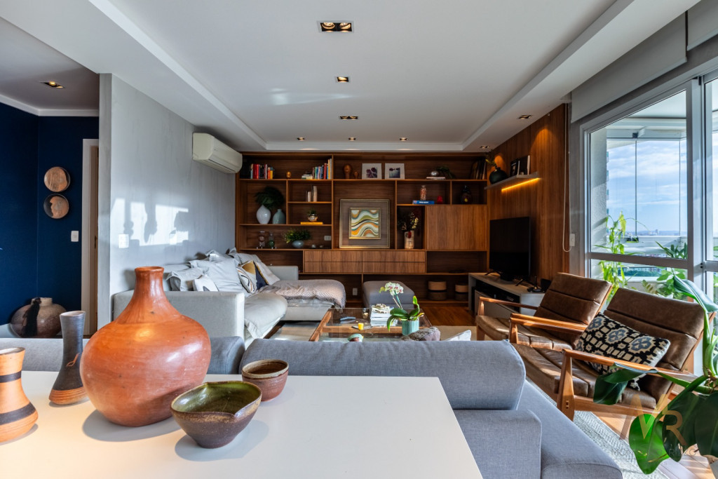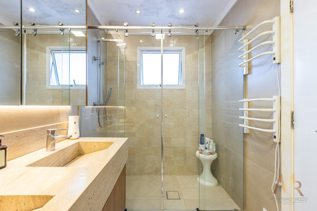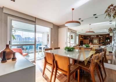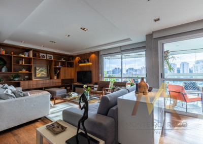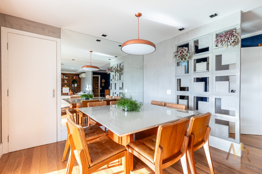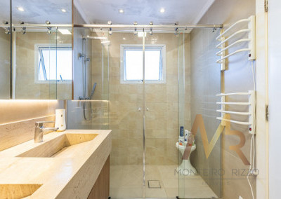 Um amplo living integrado a um espaçoso terraço gourmet para receber amigos e familiares com muito conforto. Além disso, são 5 banheiros para garantir o conforto de todos os moradores e visitantes.