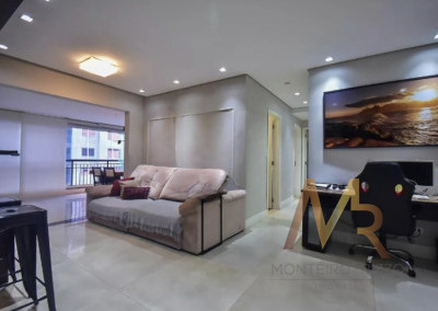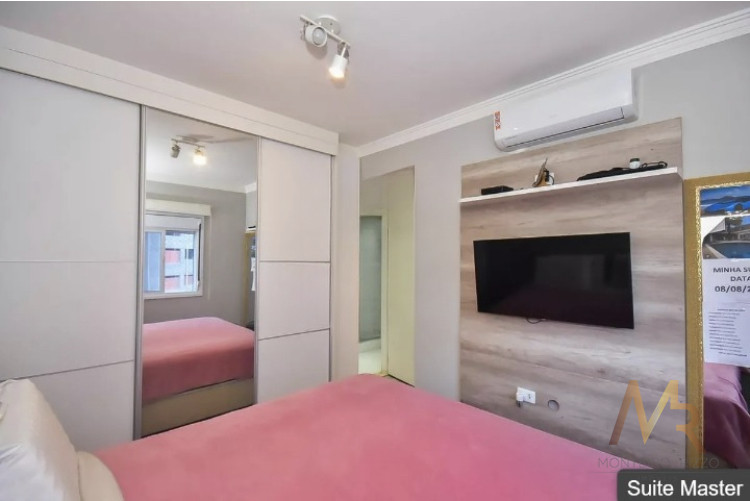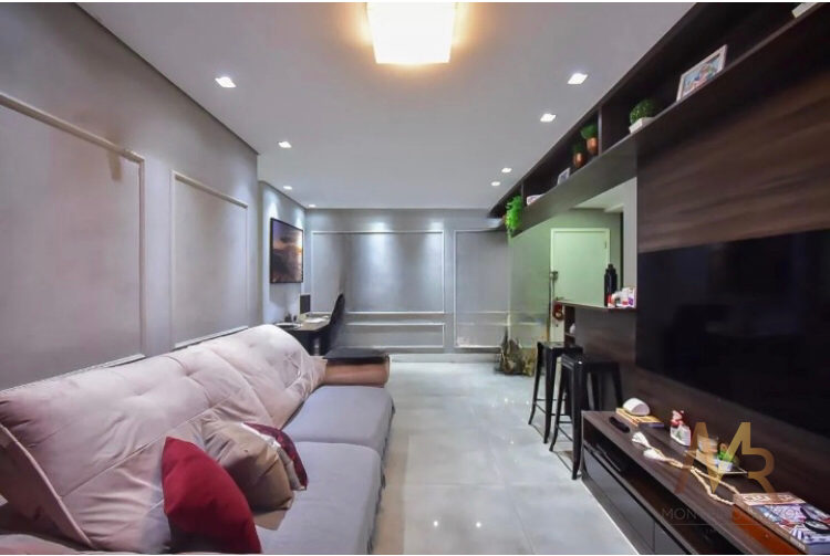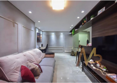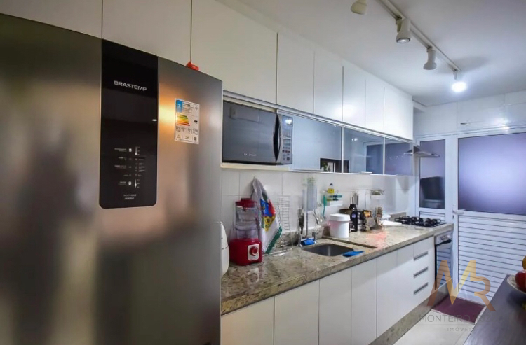 Apartamento de 96m², com 3 dormitórios, sendo 2 suítes* e 2 vagas de garagem, com armários planejados, terraço gourmet envidraçado, e cozinha integrada.