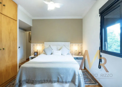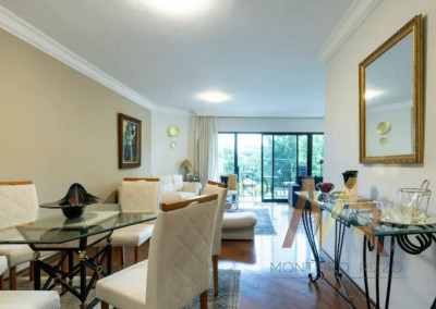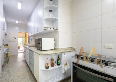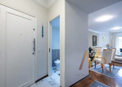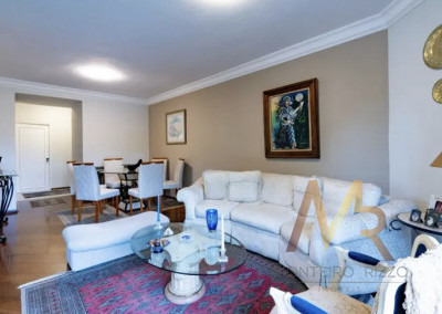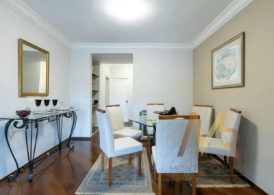 Apresentamos um apartamento de 120m² com três quartos, sendo uma suíte, três banheiros e três vagas de garagem determinadas. Entre as características do apartamento estão água quente, área de serviço, banheiro de serviço, dependência de funcionário, depósito, interfone, lavabo, piso de madeira, sacada e uma vista permanente. Andar baixo e ótimos armários planejados.