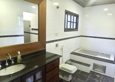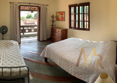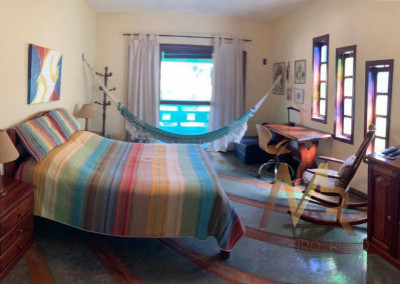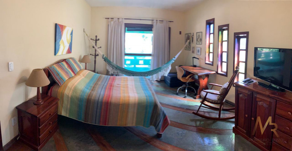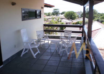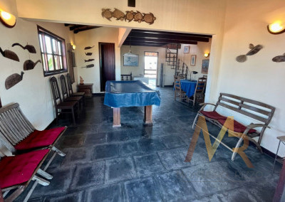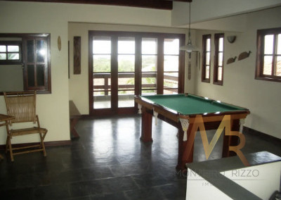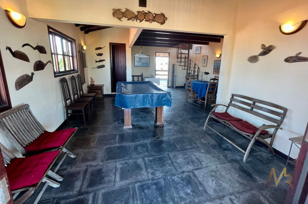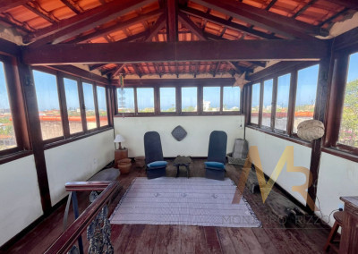 A residência está totalmente mobiliada e equipada, contando com quatro quartos, incluindo uma suíte master com closet e hidromassagem. Os ambientes sociais são amplos e bem distribuídos, com sala de estar, sala de televisão, sala de jantar e uma cozinha completa. O lazer se integra às varandas presentes tanto no térreo quanto nos quartos, além de dois grandes varandões no andar superior, onde ficam o salão de jogos e o mirante panorâmico.
