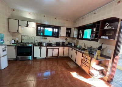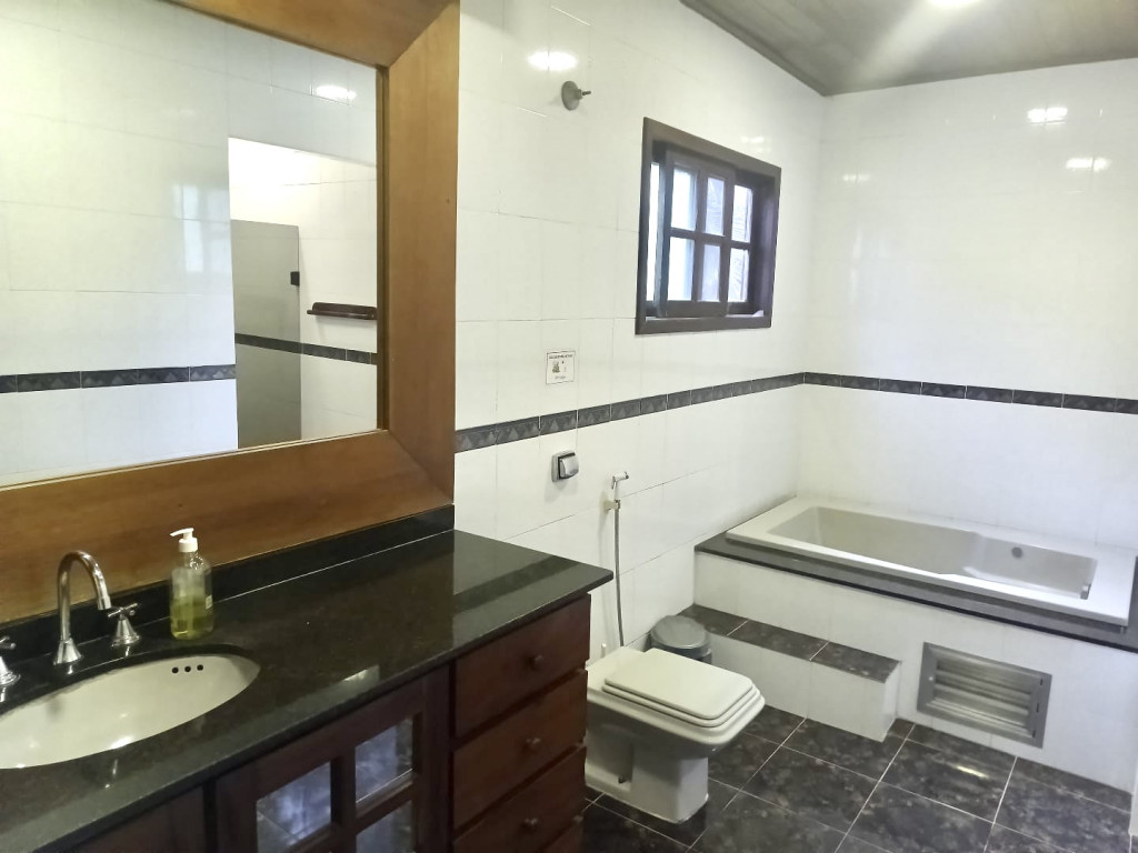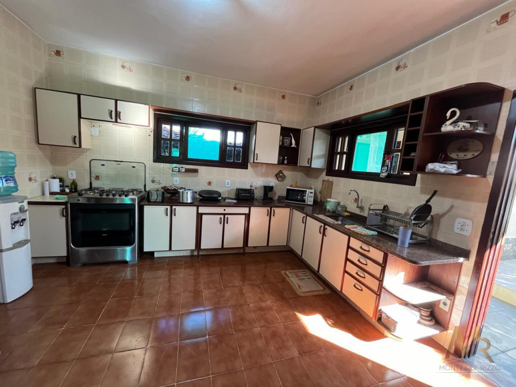 Na área externa, destaque para a excelente piscina com deck em porcelanato, espaço gourmet com churrasqueira e sauna. O imóvel dispõe ainda de casa de caseiro nos fundos e um belo jardim na parte frontal.