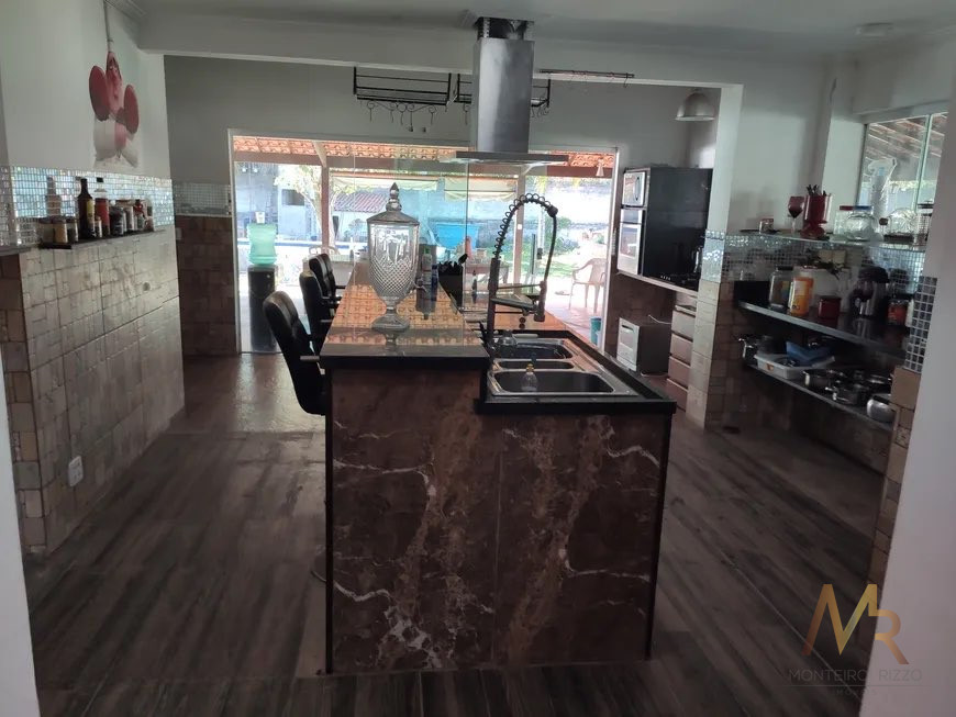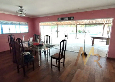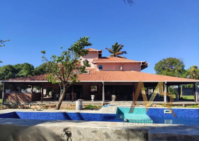 400 M de varandão com churrasqueira; piscina 100.000 L ; edícula 100 M: Garagem/casa caseiro/lavanderia; 2 canis.