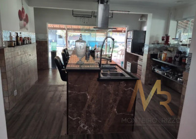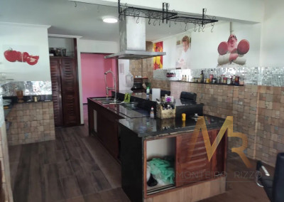1º Andar: Salão 3 ambientes 60 M; sala de jantar 30 M; cozinha completa 35 M; 1 suíte, 1 quarto grande e banheiro social , 2 armários embutidos, 2 dispensas.