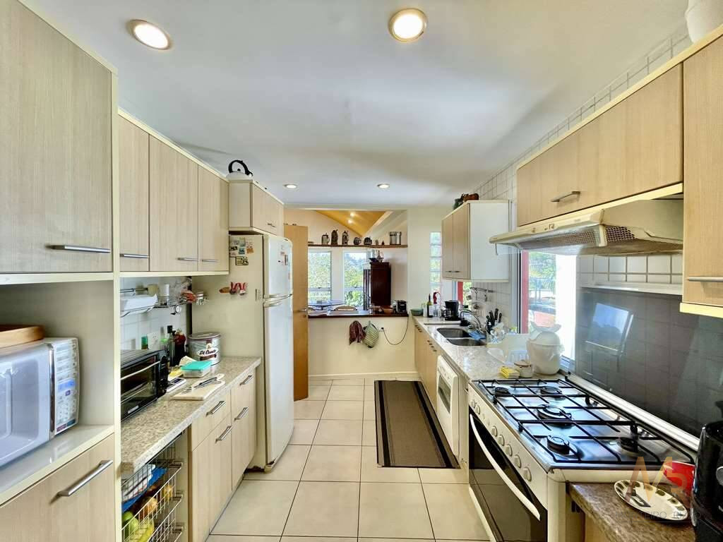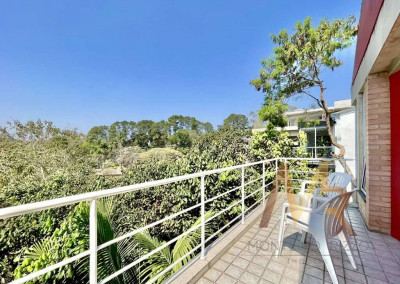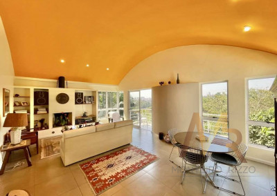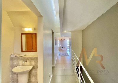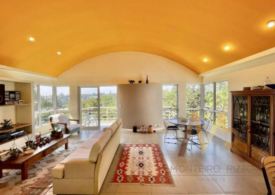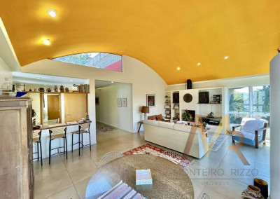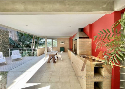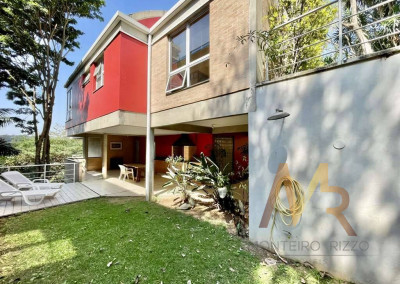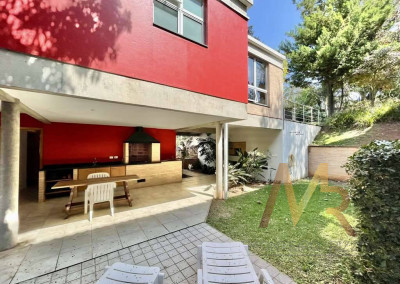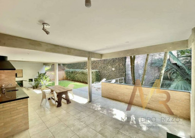 No piso inferior, encontram-se mais dois dormitórios, um deles com uma charmosa sacada, atendidos por um banheiro completo com box de vidro e banheira de hidromassagem. A cozinha em estilo americano, com armários planejados, integra-se perfeitamente ao living e oferece acesso direto e fácil à garagem. A área de serviço é complementada por um espaço que pode ser utilizado como adega ou depósito. A área gourmet é um convite à celebração, comportando três ambientes e equipada com bancada, churrasqueira, forno de pizza e fogão à lenha. Uma ducha externa, com a hidráulica já preparada para a instalação de um SPA com jacuzzi, e uma dependência de empregada com entrada independente, adicionam ainda mais conveniência.