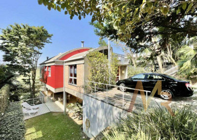 A garagem dispõe de duas vagas descobertas, e um grande depósito no porão oferece um enorme potencial para desenvolver novos espaços integrados à natureza. O jardim lateral e dos fundos emolduram a propriedade, que conta com um sistema de aquecimento via boiler elétrico de 300 litros, já preparado para adaptação a um sistema solar, e um armazenamento total de 3.300 litros de água. Esta é uma oportunidade única de viver em uma casa com arquitetura autêntica e cheia de possibilidades.