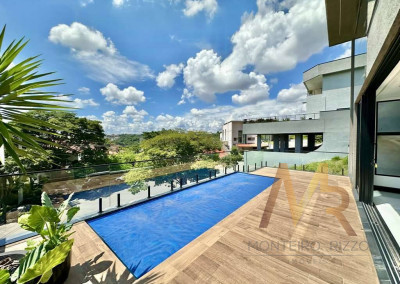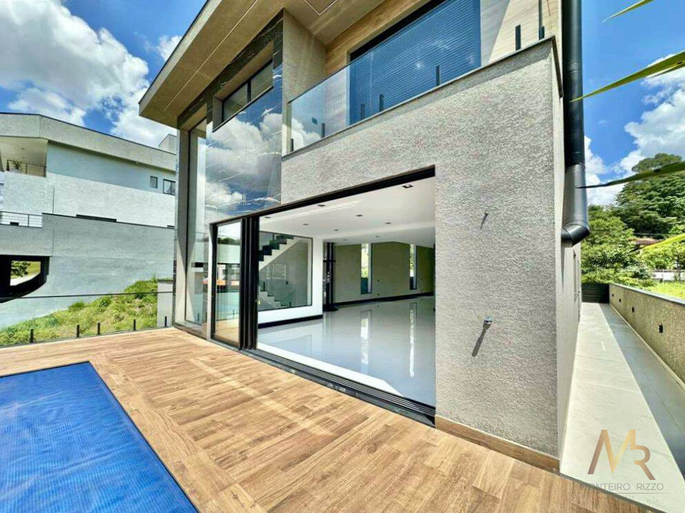 A funcionalidade é garantida pela completa área de serviço com dependências, um grande depósito e uma garagem para seis veículos com espaço para oficina. O conforto é assegurado pelo sistema de aquecimento solar e pela localização privilegiada, próximo à divisa com o condomínio Granja Viana II. Como um diferencial exclusivo, o projeto executivo de marcenaria será cedido ao comprador, permitindo a finalização dos interiores com o mesmo padrão de excelência. Esta é uma oportunidade rara de adquirir uma propriedade que é a personificação do luxo contemporâneo.
