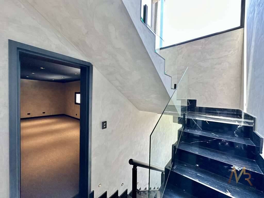 Apresentamos uma residência de alto padrão verdadeiramente excepcional, onde a arquitetura moderna e o design de interiores assinado por Maysa Cabral e Talita Almeida se unem para criar um lar único. Nova e impecável, esta casa foi concebida para oferecer o máximo de conforto e acessibilidade, destacando-se por um exclusivo elevador cápsula Elevac que atende a todos os pisos. A sofisticação é uma constante, desde o projeto de gesso e iluminação que percorre todos os ambientes até as esquadrias de alumínio preto com persianas elétricas nos quartos e a seleção de pisos nobres como mármore e porcelanato.