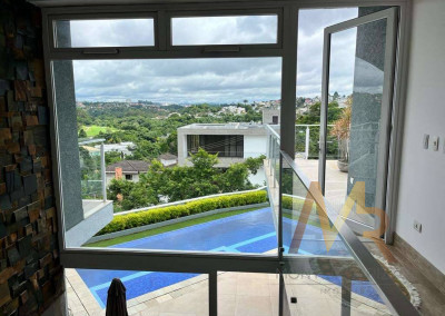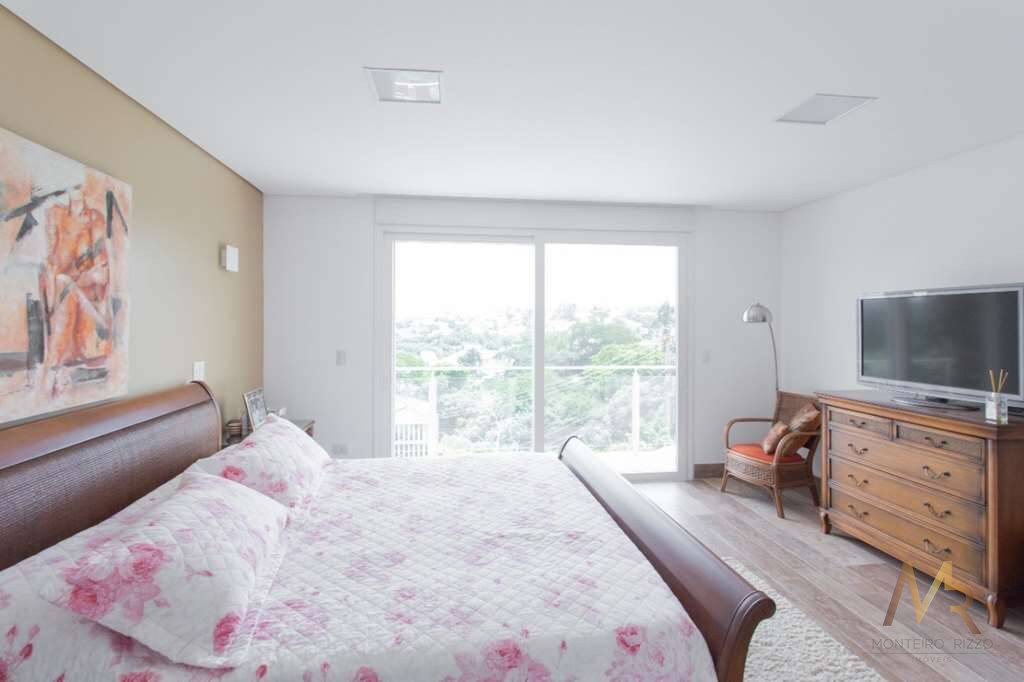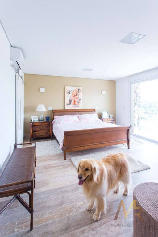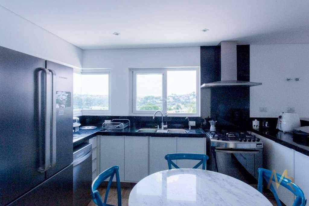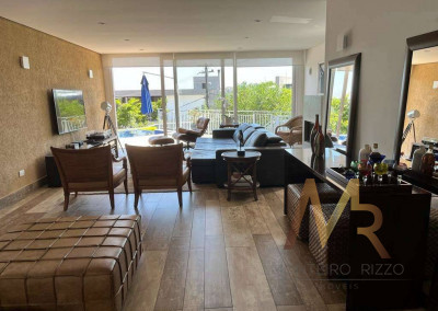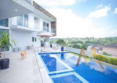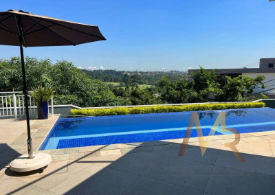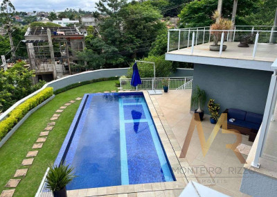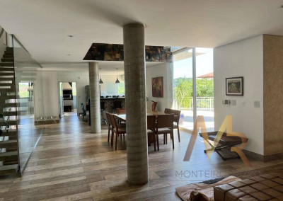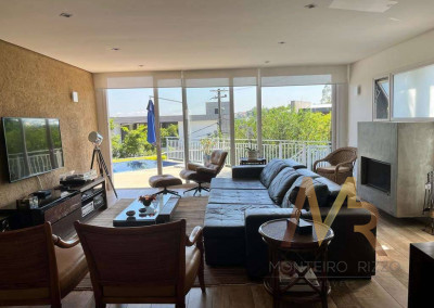 Ao entrar pela imponente porta pivotante de madeira, você é recebido por um espaçoso living para quatro ambientes, onde uma lareira a lenha aquece as noites mais frias. Este espaço se integra perfeitamente à área da piscina através de grandes portas de correr. A copa/cozinha planejada é um deleite para os gourmets, com bancadas em granito, triturador elétrico e eletrodomésticos de ponta. Um amplo escritório e um lavabo sofisticado completam a área social. A excelência se estende à área íntima, que conta com quatro dormitórios, sendo três suítes com sacadas voltadas para a piscina e uma vista panorâmica indescritível para o São Fernando Golf Club. A suíte master, com seus 24 m², é um verdadeiro refúgio, com um closet de 16 m² e um banheiro luxuoso com ducha e jacuzzi dupla com cromoterapia.