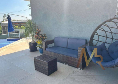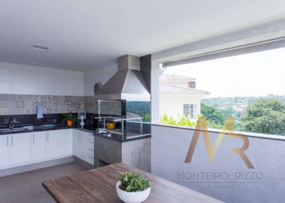 A área de lazer é um convite à celebração, com um espaço gourmet integrado à cozinha e à piscina, equipado com uma enorme bancada em granito e churrasqueira com rotação elétrica. A piscina de alvenaria com borda infinita e iluminação em LED é abastecida por um sistema sustentável de captação de água da chuva e recebe sol o ano inteiro. O jardim abriga um pomar com diversas árv-ores frutíferas e ervas aromáticas. A infraestrutura é impecável, com rede de água pressurizada, aquecimento solar com grande capacidade de armazenamento, iluminação toda em LED e uma garagem coberta para quatro carros. Esta é uma residência que une design de renome, tecnologia e uma conexão sublime com a natureza.