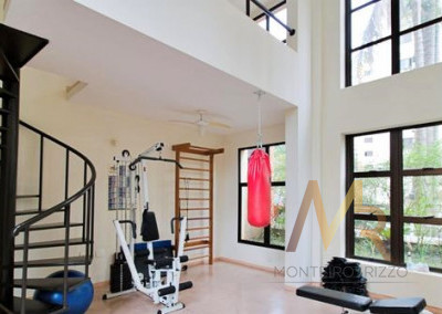 Lazer com piscina, churrasqueira, academia e salão de festas.