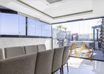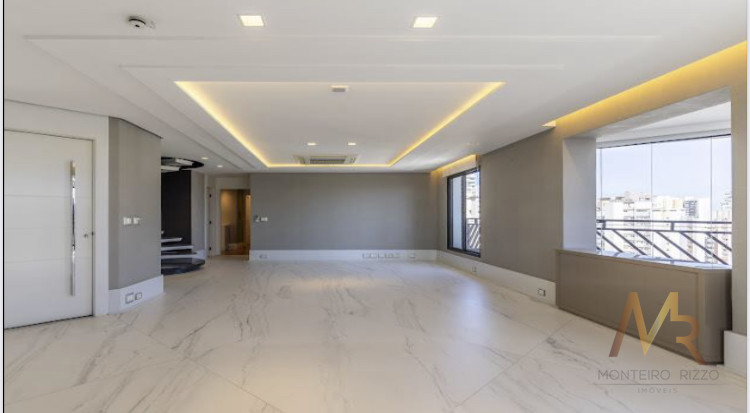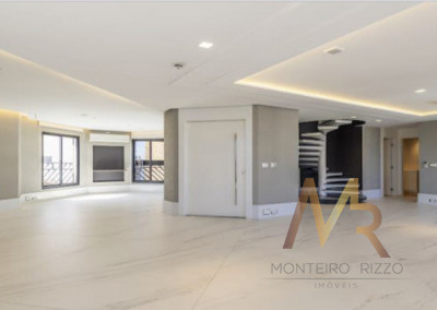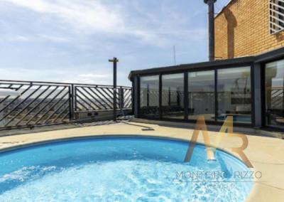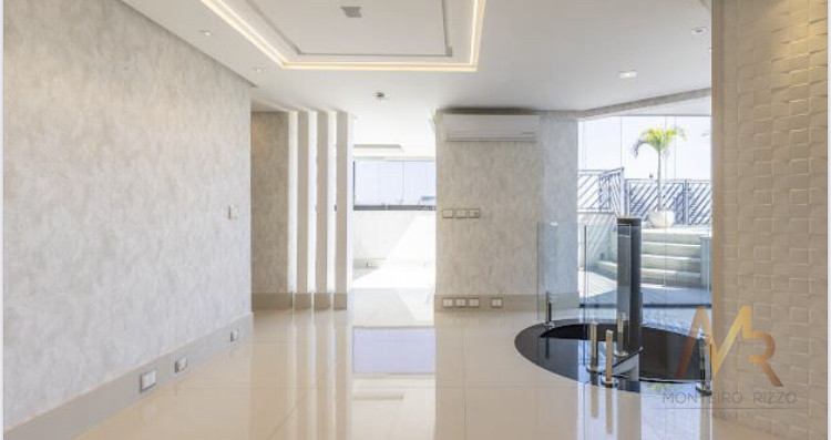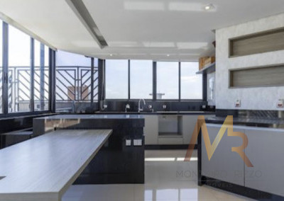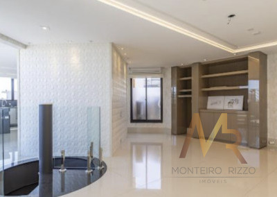 Cobertura Duplex no Campo Belo com 440 m2, 4 vagas de garagem juntas, 1 apartamento por andar, no total de 18 apartamentos (uma única torre); elevador social, elevador de serviço.