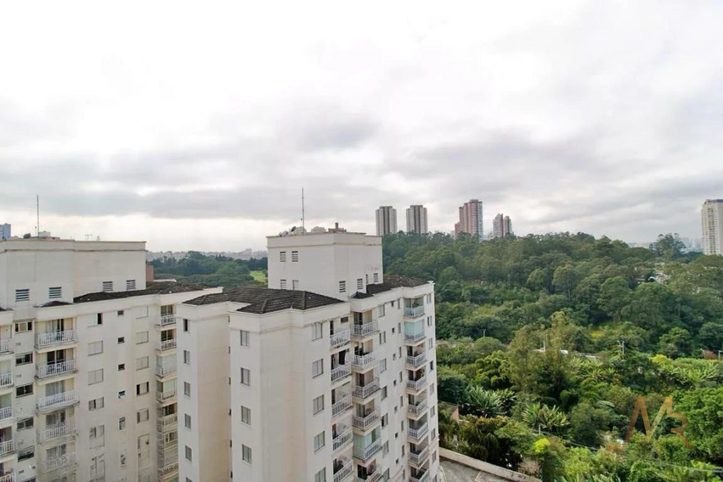 Vista para o colégio Porto Seguro. Sacada com rede. Este imóvel está bem equipado, é ideal para quem procura conforto e comodidade.