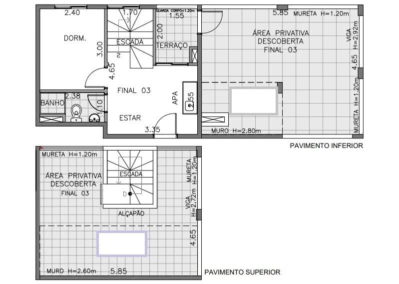 Cobertura Duplex de 83m² com 3 dormitórios! Cobertura com 3 compartimentos: Piso Superior/Piso Interno/Piso Externo: todos conectados. Contra piso. Escadas em Alvenaria, cozinha+dormitório = Serão entregues com piso laminados. Água ainda não individualizada, gás apenas no fogão cozinha. Chuveiro elétrico. Não divide parede com outra unidade! Prédio NÃO TEM GARAGEM.