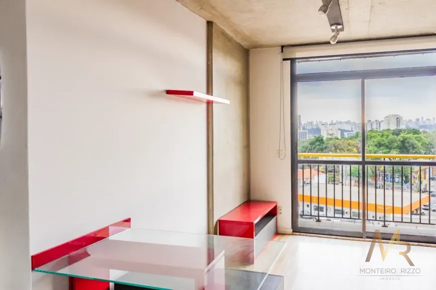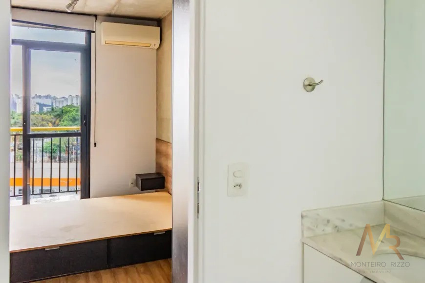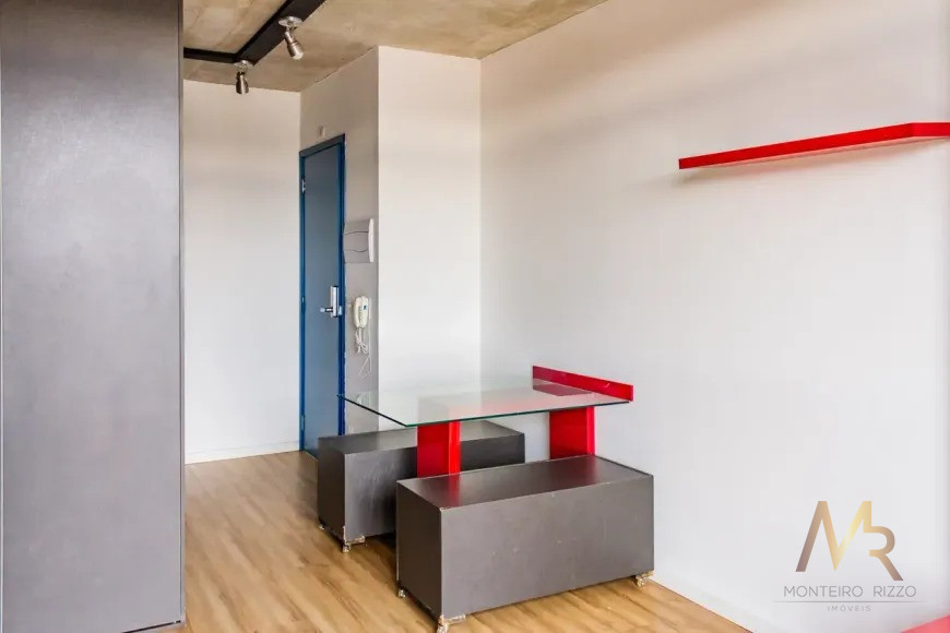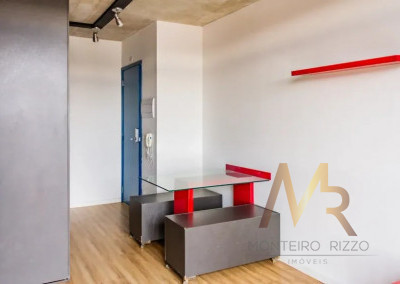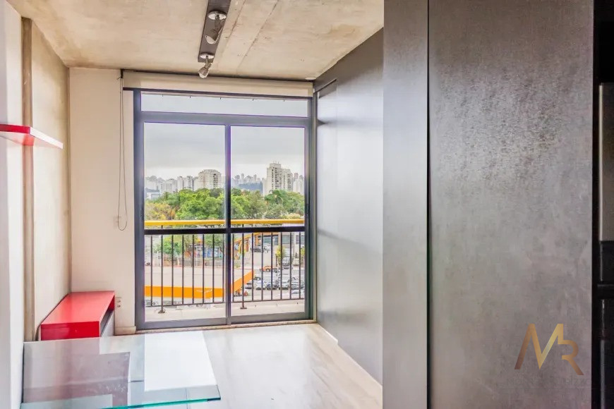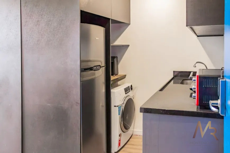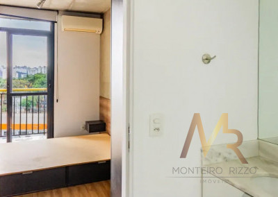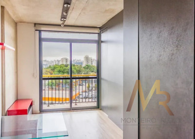 Apartamento studio mobiliado à venda em Santo Amaro, 35m2, varanda com linda vista, 01 suíte, cozinha e lavanderia, 01 vaga de garagem.