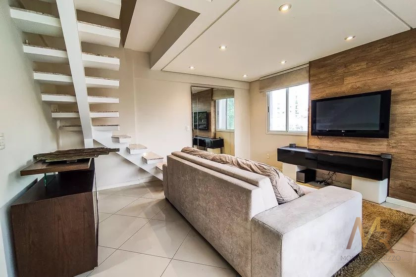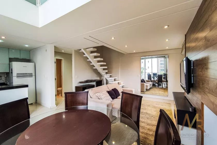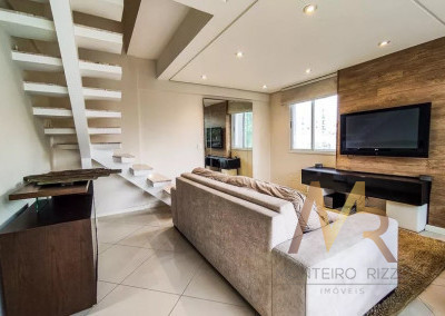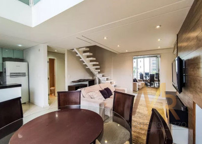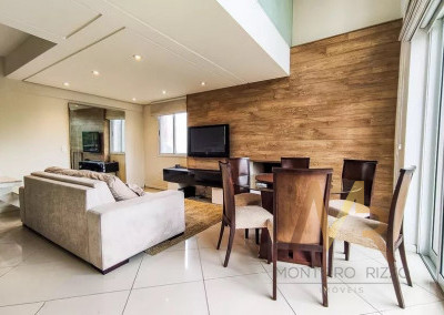 Imóvel espaçoso à venda com 2 quartos, sendo 1 suíte, e 2 banheiros no total, 2 vagas de garagem, com mezanino ( 1 quarto). Apartamento mobiliado, com planejados de qualidade.