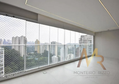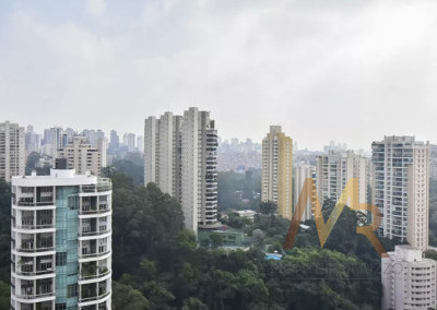 Apartamento com 213m², reformado e localizado em uma das ruas mais valorizadas do Panamby, próximo ao Parque Burle Marx. A área social é composta por living integrado a duas varandas, favorecendo a circulação entre os ambientes. Os acabamentos incluem pisos Portobello, metais de qualidade, marcenaria planejada, projeto de iluminação e automação. A área íntima dispõe de um escritório completo e três suítes.