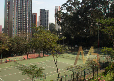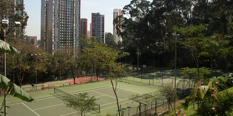 Esportes: Academia de ponta com professores, quadras poliesportivas, quadras de tênis e quadras de beach tênis.