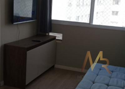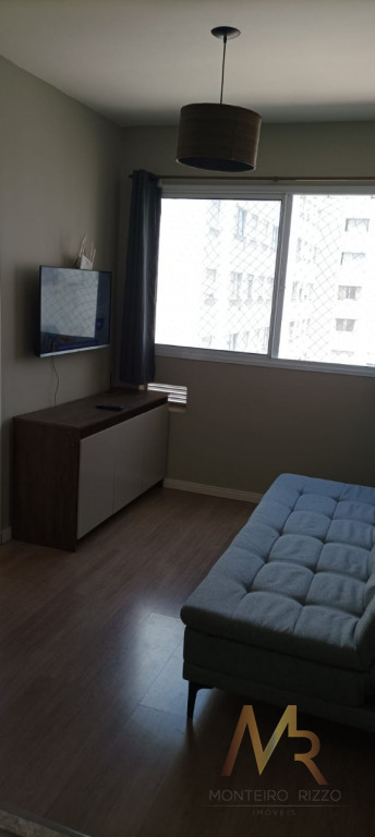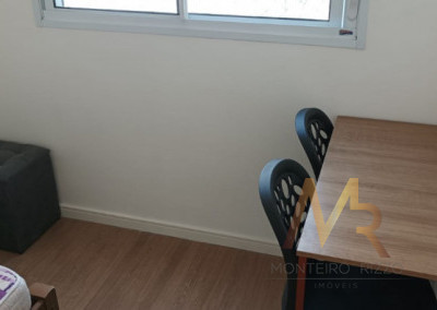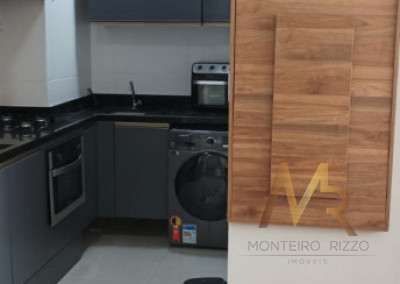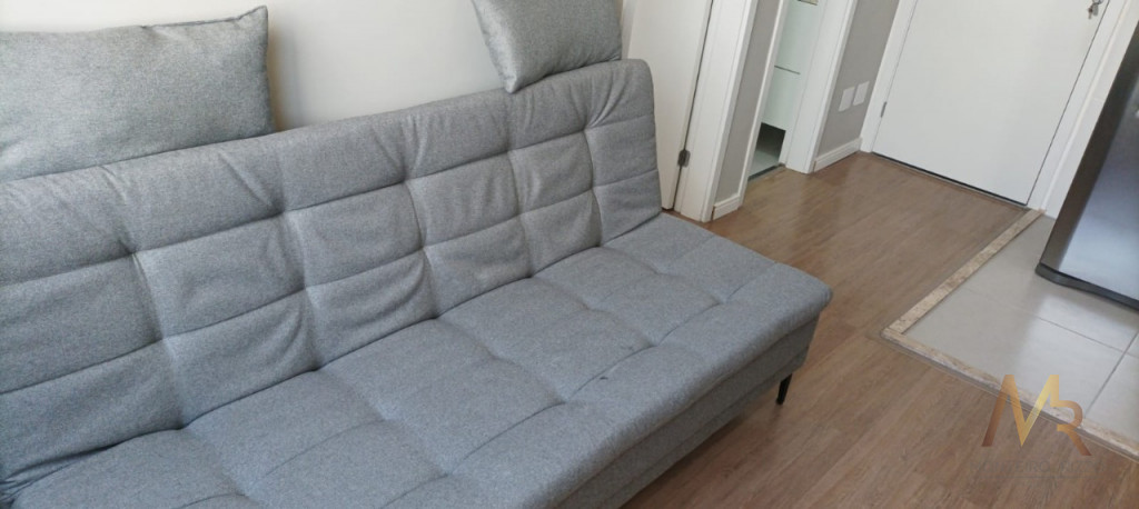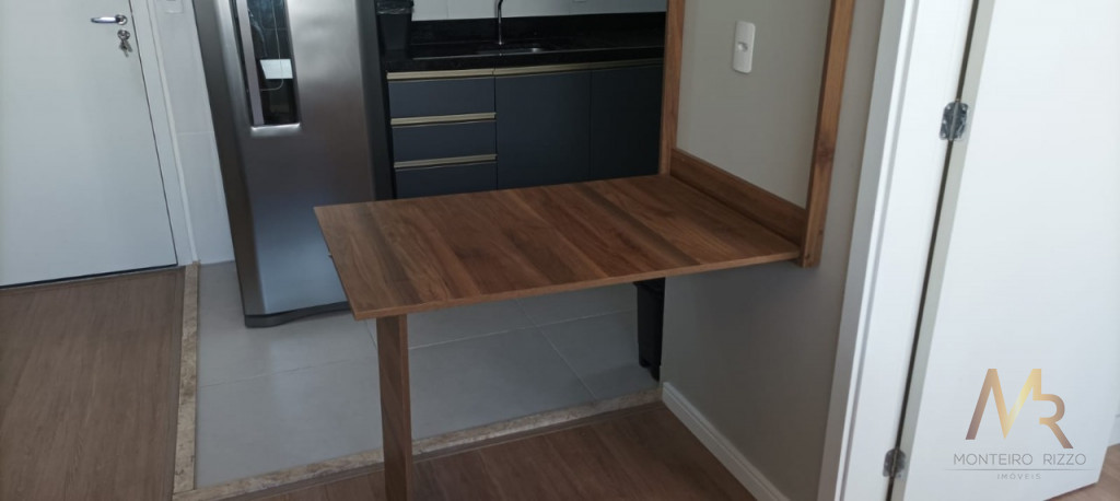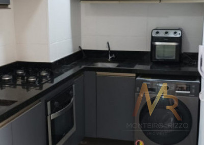 Apartamento com 37m², 2 dormitórios, mobiliado, com geladeira, lava e seca, cooktop, armários planejados.