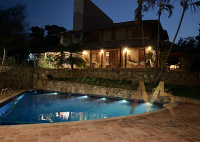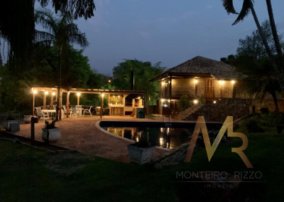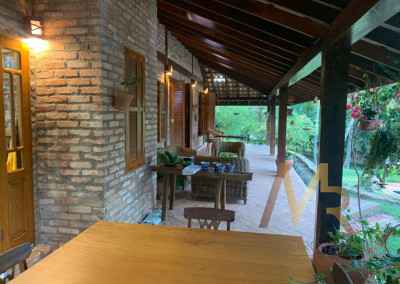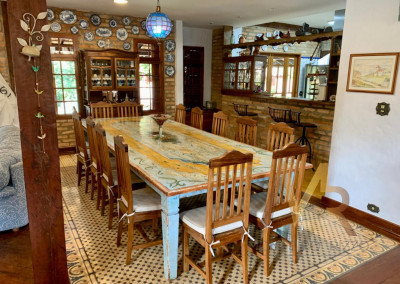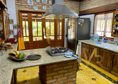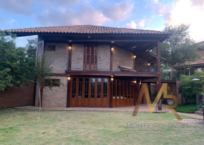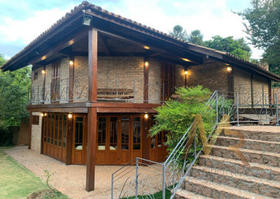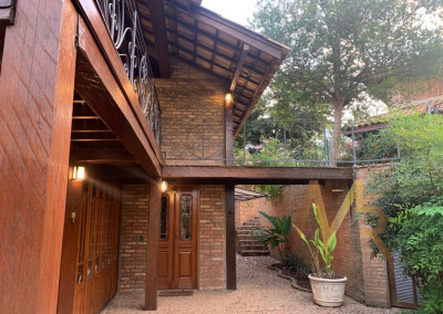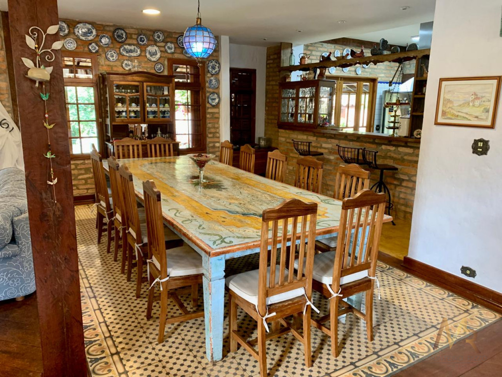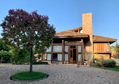Casa em estilo toscano, construída com estrutura de madeira lavrada de maçaranduba, piso hidráulico e tijolos antigos de demolição, proporcionando um ambiente rústico. O projeto arquitetônico privilegia a transparência e a luminosidade da casa. A casa tem um lindo jardim com grama esmeralda e um pomar com grande variedade de frutas. Um lugar perfeito para viver e receber amigos e familiares 関
