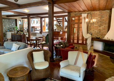 A casa conta com : Piso térreo com sala para 4 ambientes, sala de lareira, sala de jantar e sala de estar, cozinha, lavanderia, no piso superior ficarm os dormitórios para o conforto e tranquilidade na hora do descanso, sendo 2 Suítes mais 2 dormitórios com banheiro e sala intima.