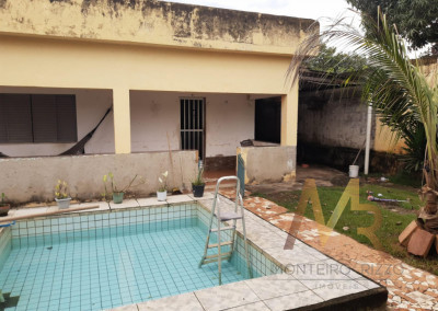 Na área externa, a casa possui muito espaço na parte da frente e uma pequena piscina, trazendo ainda mais conforto para momentos de lazer.