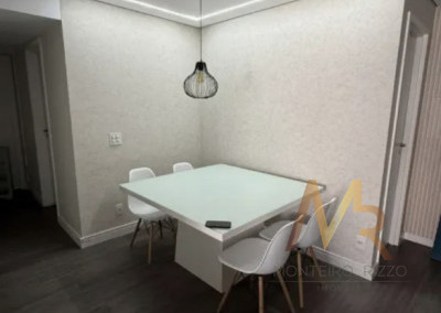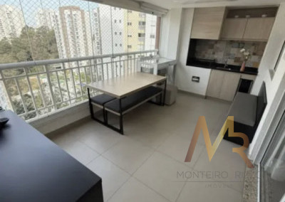 O apartamento no bairro Vila Andrade possui 97 metros quadrados com 3 quartos, sendo 1 suíte, 2 banheiros e 1 lavabo, 2 vagas de garagem cobertas e fixas (sem sorteio), varanda gourmet, possui ar condicionado novo em todos os quartos e na varanda (funciona via app wifi), repleto de móveis planejados e com vista definida e muito boa.