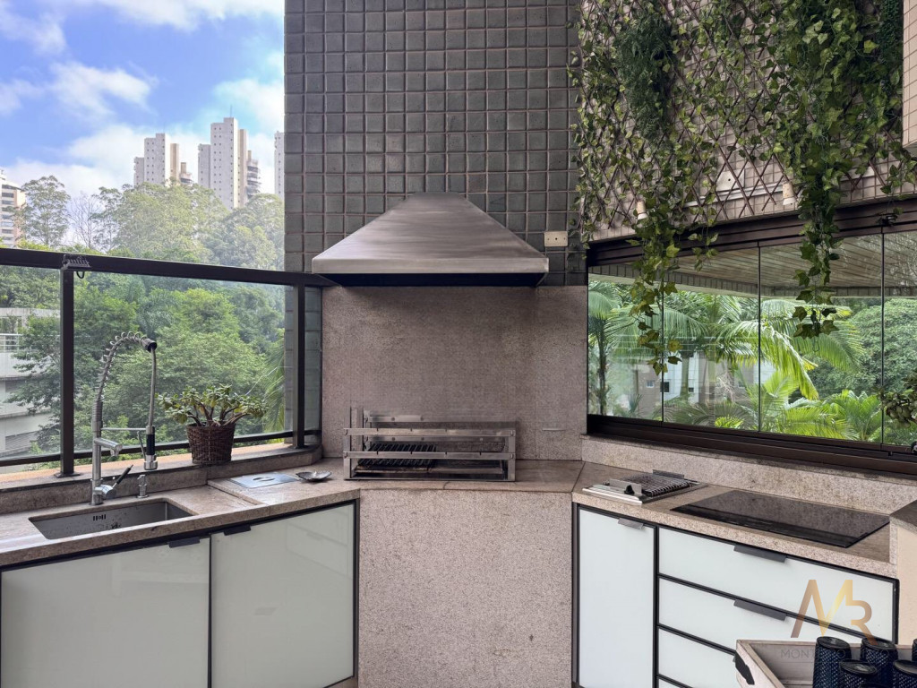 Apartamento penthouse para venda/locação no Panamby, 251m², ampla varanda gourmet com churrasqueira, 03 suítes (suíte master com hidromassagem), sala para vários ambientes e lareira, cozinha, área de serviço com banheiro e dependência de empregada, 03 vagas de garagem cobertas e depósito no subsolo.