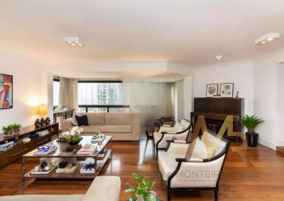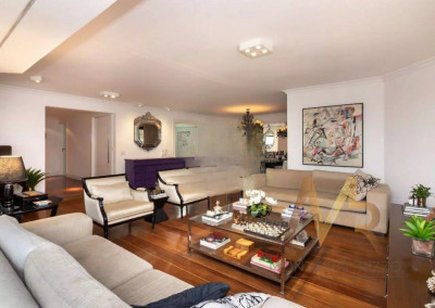 Apartamento no Panamby com 236m², o living amplo, piso em madeira. O piso em madeira, tornando o espaço ainda mais convidativo, perfeito para momentos de descanso ou encontros entre amigos e familiares. São vários ambientes de estar integrados, incluindo uma sala de home theater, sala de jantar e uma charmosa sala de almoço, que garantem conforto e versatilidade no dia a dia. A cozinha planejada é um destaque à parte. Moderna e funcional, ela combina requinte e praticidade, com armários sob medida que otimizam o espaço e proporcionam um ambiente agradável para preparar refeições com estilo. Na área íntima, o apartamento dispõe de quatro dormitórios, sendo três suítes espaçosas, todas equipadas com ar condicionado e armários embutidos de excelente qualidade. As suítes possuem sacadas que permitem a entrada de luz natural e ventilação, enquanto a suíte master se destaca pelo amplo closet, oferecendo conforto e privacidade aos moradores. Cada ambiente foi cuidadosamente planejado para proporcionar bem-estar e praticidade.