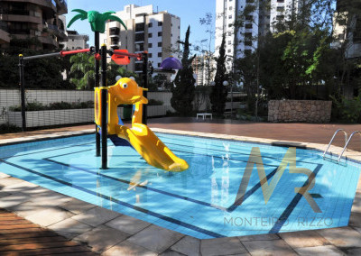 Lazer - portaria 24 horas, academia, piscina, quadra esportiva, salão de festas, gás encanado, churrasqueira, playground e sauna,