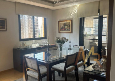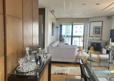 Este apartamento de 206,07m² privativos no Condomínio Tons do Tangará oferece um layout excepcional, com 2 terraços, sendo um de estar e outro com churrasqueira, planta com 4 dormitórios, sendo 3 suítes confortáveis e um lavabo. O living é espaçoso, integrado com lareira e sala de jantar, proporcionando ambientes distintos para convivência. Destaca-se o amplo terraço envidraçado, localizado em andar alto com vista permanente, elevando a experiência de moradia. Todo o imóvel tem ótimo acabamento, piso em madeira nobre, armários planejados de alta qualidade. Cozinha bem arejada , ampla área de serviço com dependência de funcionários, São 4 vagas de garagem privativas complementam a infraestrutura superior deste imóvel.