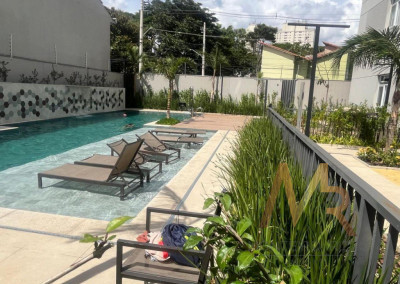 Condomínio completo, com piscina, churrasqueira, coworking brinquedoteca, salão de jogos, playground, espaço pet, cercado por área verde e portaria com segurança 24 horas.