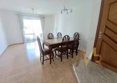 Apartamento mobiliado (geladeira moderna é grande, fogão, Mesa de madeira maciça com 6 cadeiras, rack, roupeiro.