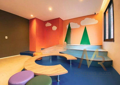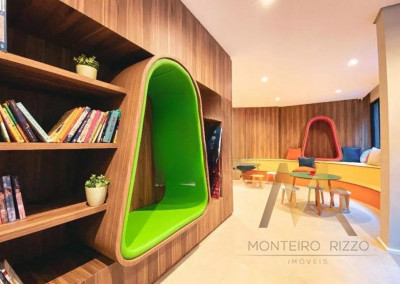 Condomínio é completo, com academia, piscina, brinquedoteca, churrasqueira, lavandeira, salão de festas e Pet Place.