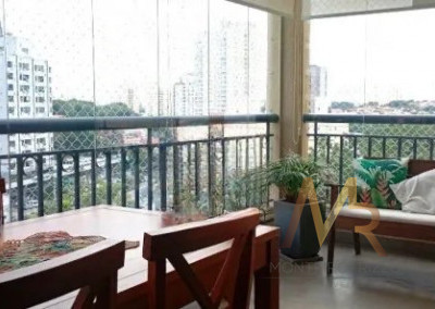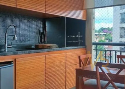 Desfrute de um excelente terraço gourmet com vista ampla, churrasqueira de inox , fechamento em vidro e persianas, integrado à sala para 3 ambientes. A cozinha é completa e muito bem iluminada, a lavanderia conta com um banheiro de serviço e área técnica para ar condicionado.